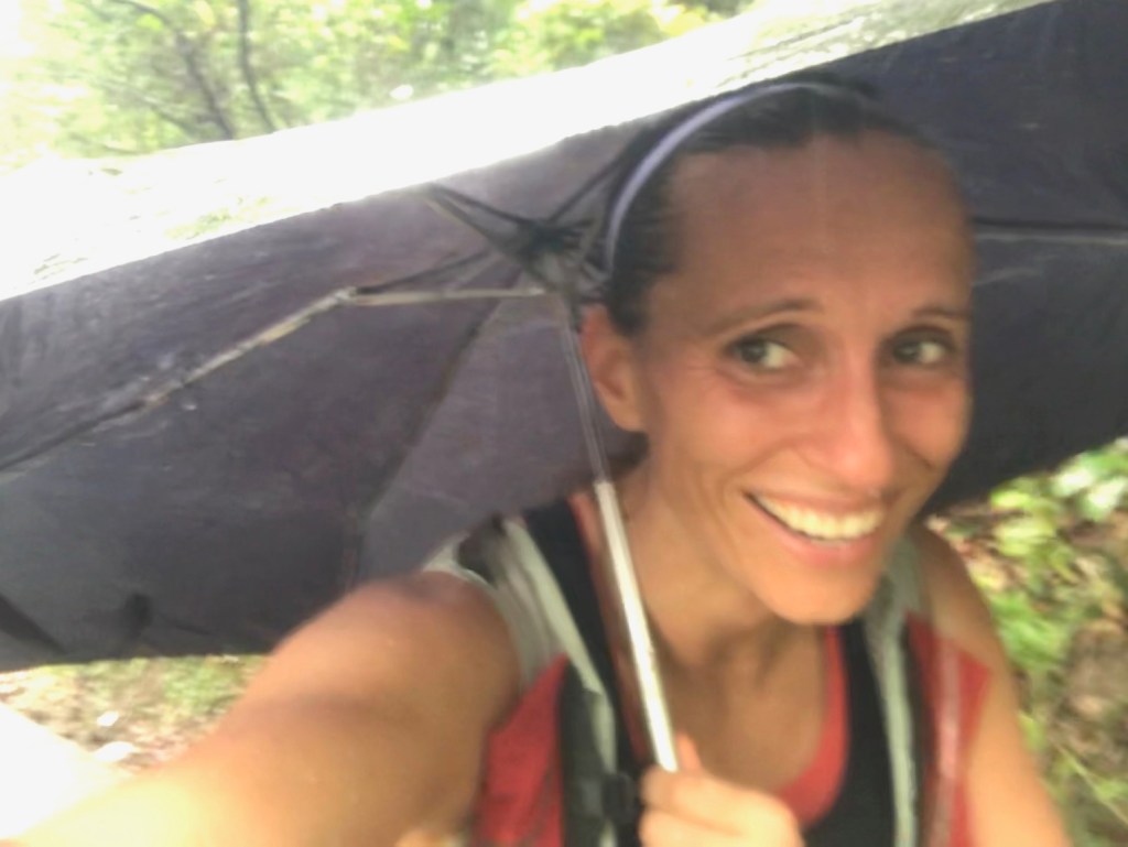 As I ran the rest of Section 2 through the jungle-like trail (neon fiddler crabs on the floor and frog noises coming from the wetlands), I started to feel the closeness of a changing weather system. And before I could do anything about it, I was suddenly running through sheets of torrential rain. And then before anyone else around me knew it, I was trail running with an umbrella. A classic look.